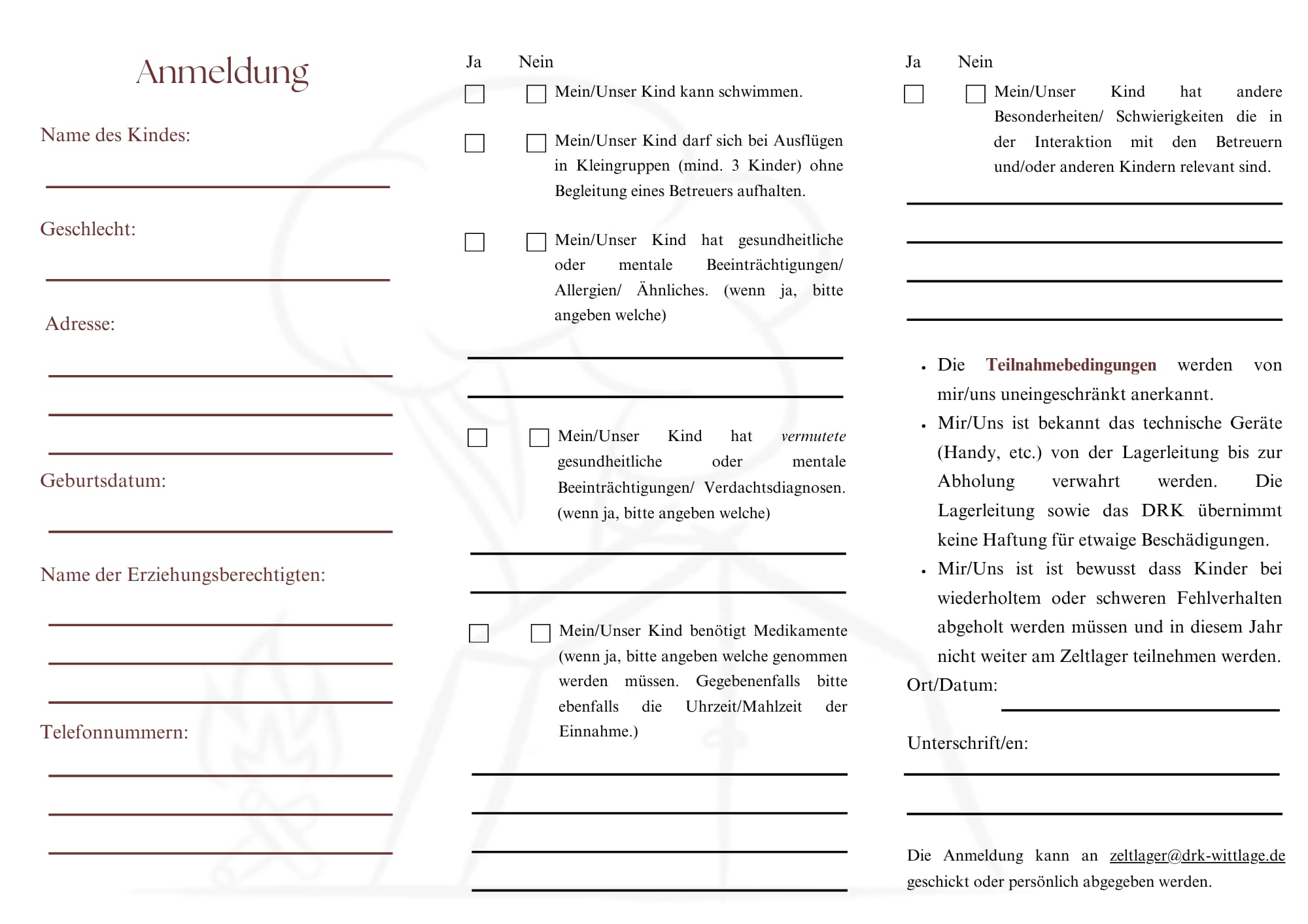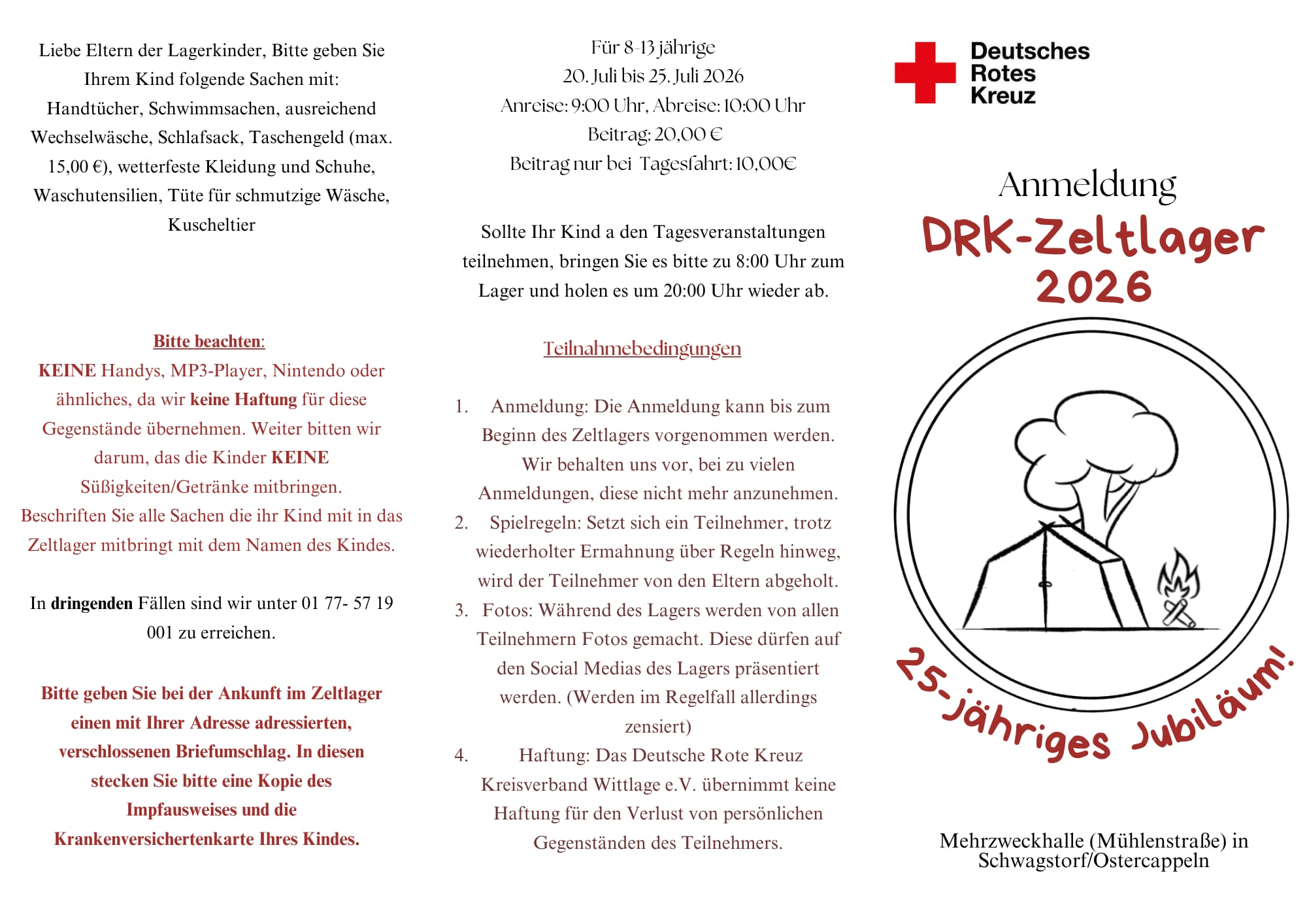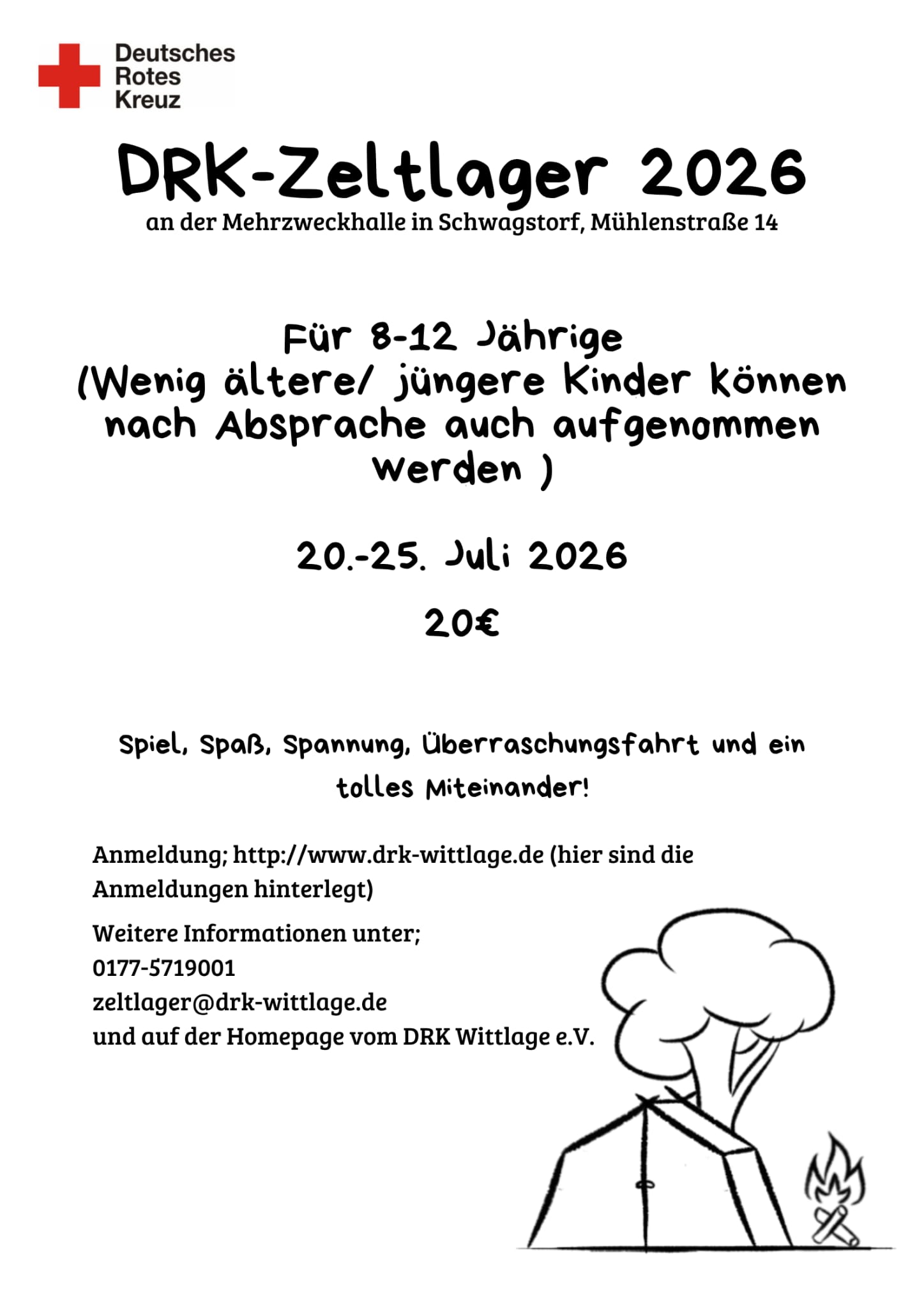 Weitere Informationen unter; 0177-5719001 zeltlager@drk-wittlage.de