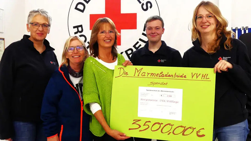 Im DRK-Sozialzentrum in Wittlage fand die "Scheckübergabe" statt. Der Begriff "Marmeladenbude" ist im Zusammenhang mit dem Historischen Markt fest verankert, denn dort werden viele hundert Gläser mit Konfitüren, Gelees, herzhafte Gartenfrüchte in dem vertrauten Marktstand am Eingang des Kirchplatzes verkauft. Der Erlös ist garantiert für den guten Zweckbestimmt. Das Team der "Marmeladenbude" arbeitet ehrenamtlich und unentgeltlich, um dies auch der Kundschaft zu belegen, soll möglichst über die Spendenübergabe berichtet werden.