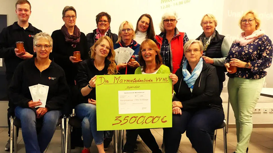 Eine Abordnung des Teams der Marmeladenbude war in das DRK-Sozialzentrum in Wittlage gekommen. Hier wurden 3.500 Euro an die DRK-Aktion "Herzensreise" überreicht. Die DRK-Verantwortliche Vanessa Knapp nahm symbolisch den Scheck entgegen. Sie berichtete über die Hilfsaktion des DRK, die seit mehr als zwei Jahren tätig ist und nur ehrenamtlich betreut wird.